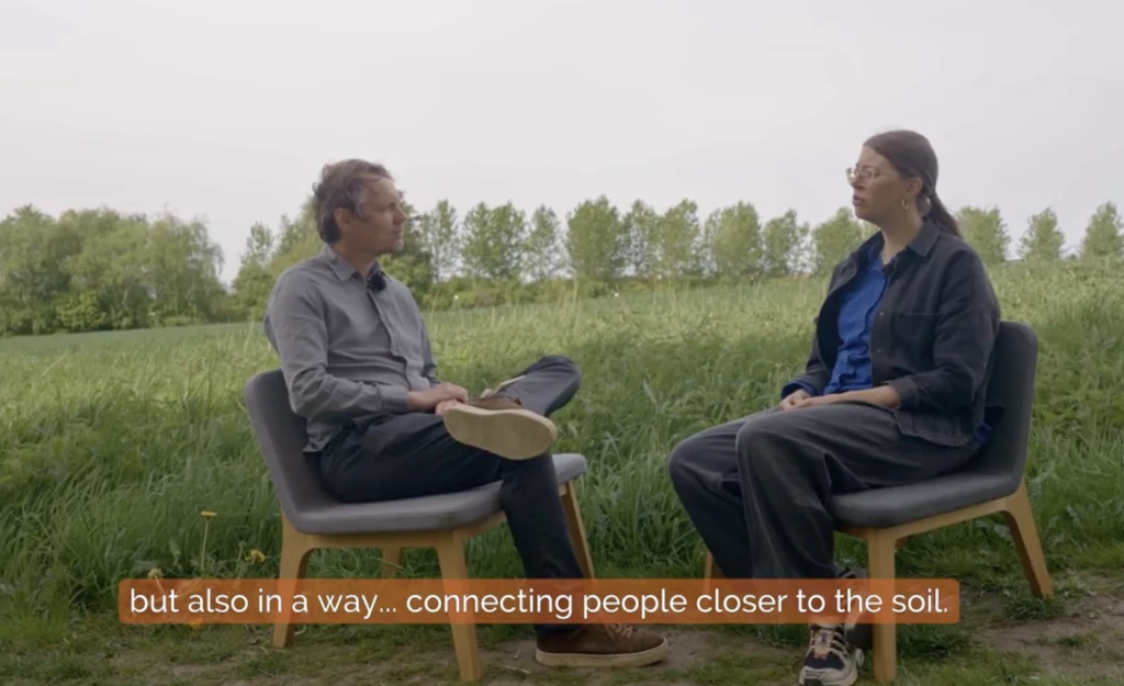 1. Regenerative farming in Roskilde. Caption: Video screenshot highlighting how regenerative practices are described as “connecting people closer to the soil.” Credits: Viração & Jangada. Source: Video “Regenerative Farming | Roskilde, Denmark”.