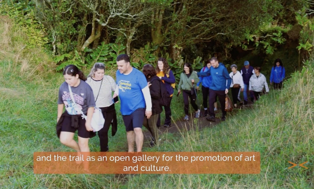 3. Community trail in the Azores. Caption: Video screenshot describing the trail “as an open gallery for the promotion of art and culture. Credits: Viração & Jangada. Source: Video “Trail Janela do Inferno | Azores, Portugal”.