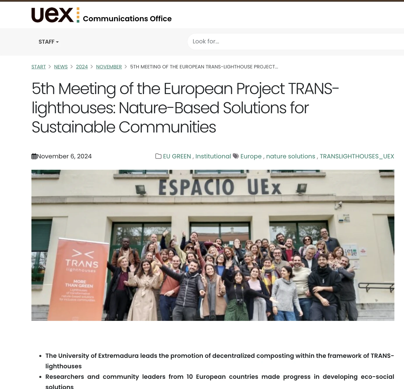 The University of Extremadura leads the promotion of decentralized composting within the framework of TRANS-lighthouses.